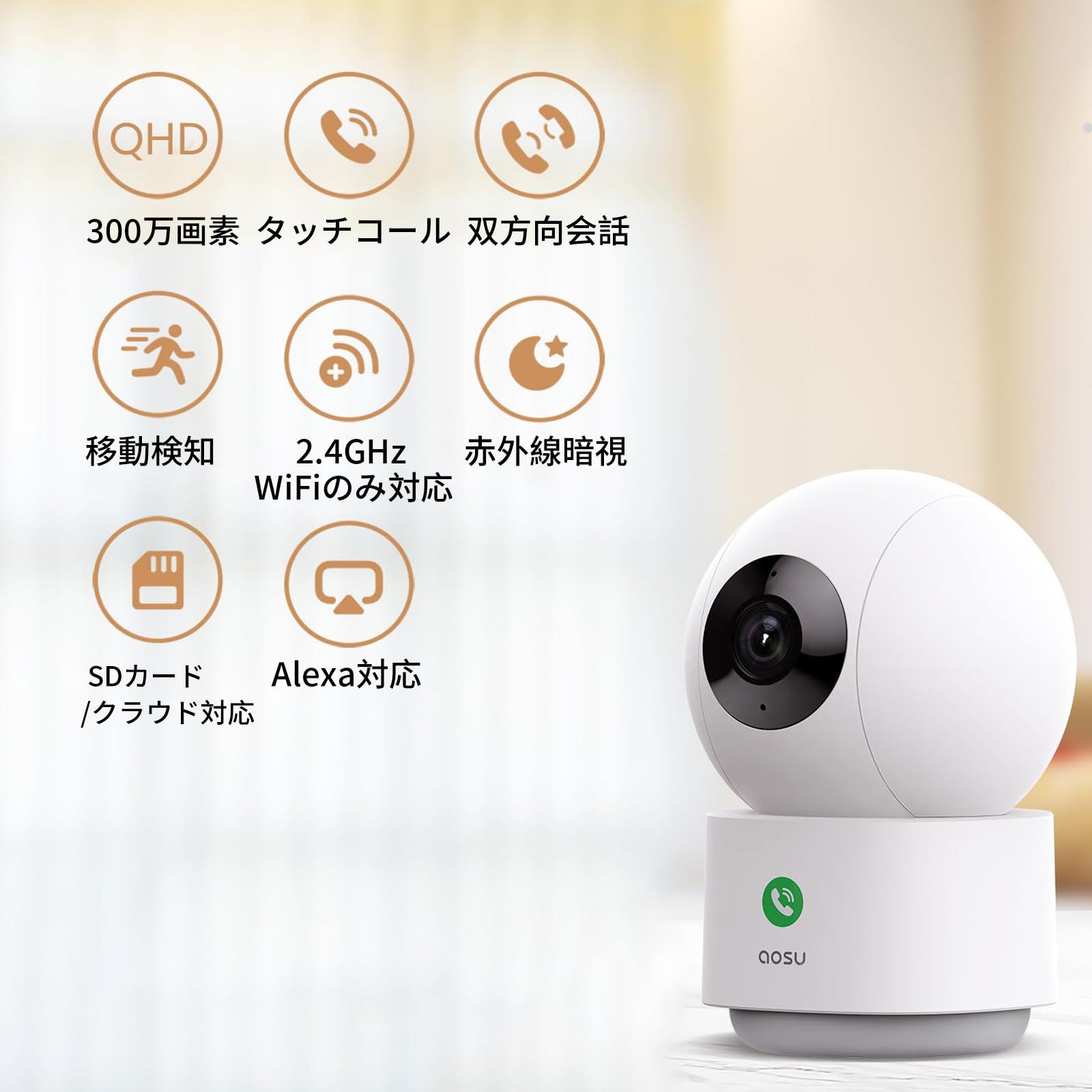【2.4GhzWiFi対応・ワンタッチコール機能・300万高画素】見守りカメラ ペットカメラ aosu 室内 防犯カメラ 人体/モーション検知 可上下左右自動追尾 PTZカメラ 即時アプリ通知 双方向会話 家族共有 ホームカメラ ドーム型 屋内カメラ インドア/玄関/店舗 セキュリティカメラ Alexa対応