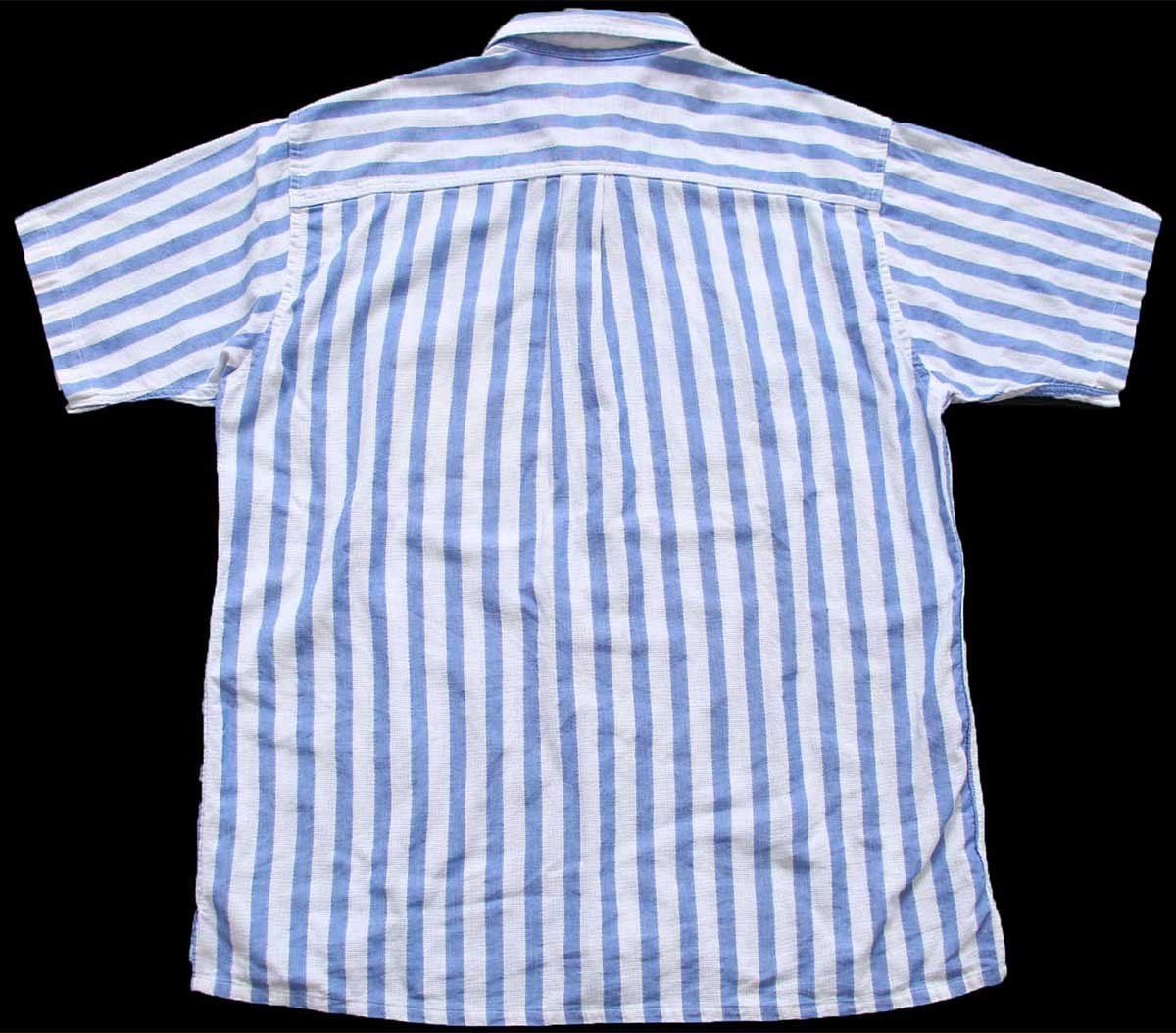 90 s L.L.Bean COOL WEAVE ストライプ 半袖 コットンシャツ 青×白 L-R ビンテージ アウトドア 織り柄 オーバーサイズ