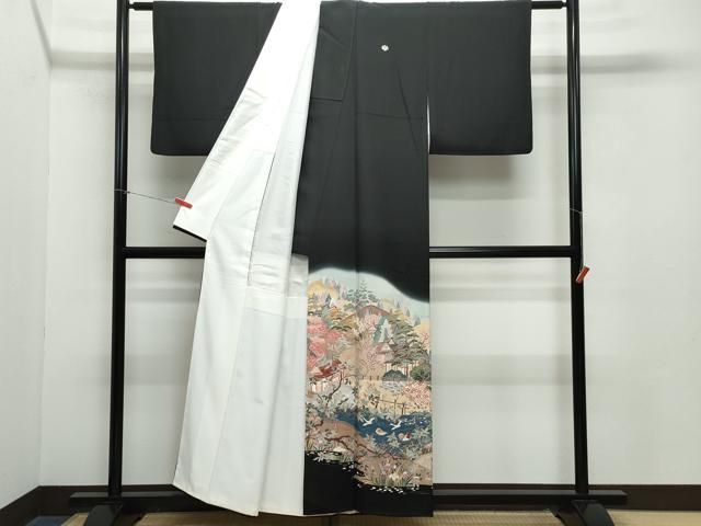 平和屋着物 豪華黒留袖 友禅 作家物 風景鴛鴦草花文 正絹 vf