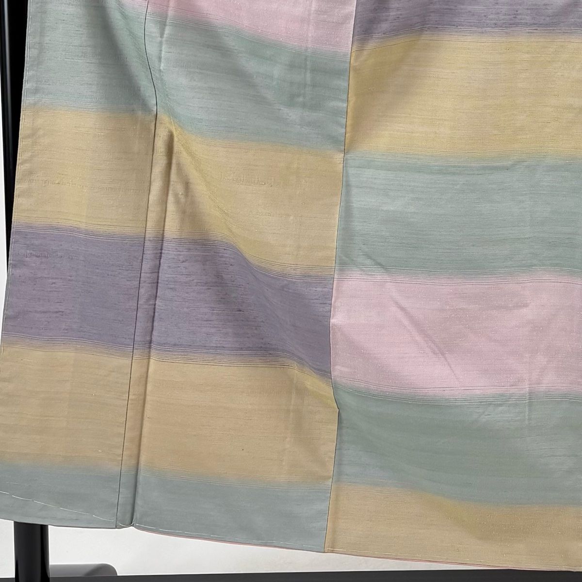 紬 身丈155 cm 裄丈62.5 S 袷 段縞 灰緑 正絹 秀品
