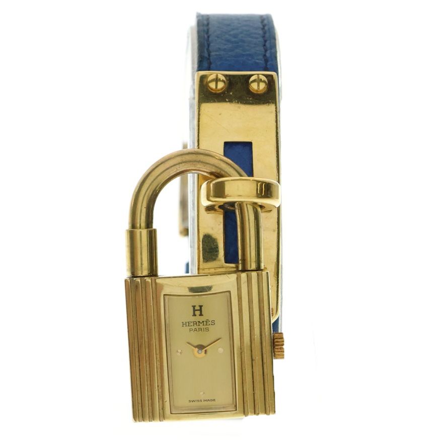 HERMES エルメス ケリーウォッチ パドロック カナデ ゴールド文字盤 レザーベルト クォーツ 腕時計 ゴールド ブルー 〇U刻印