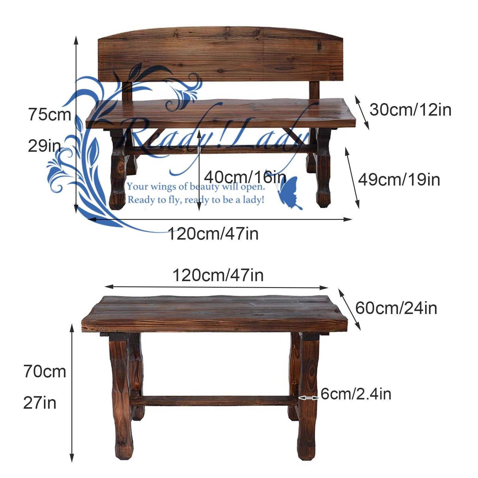 頑丈で耐久性:パティオベンチは高品質の無垢材(モミ)で作られており、耐久性があります。厚手の椅子の脚は最大400kgに耐え、安定して安全で、長寿命で、あなたとあなたの家族が自信を持って屋外の時間を楽しむことができます