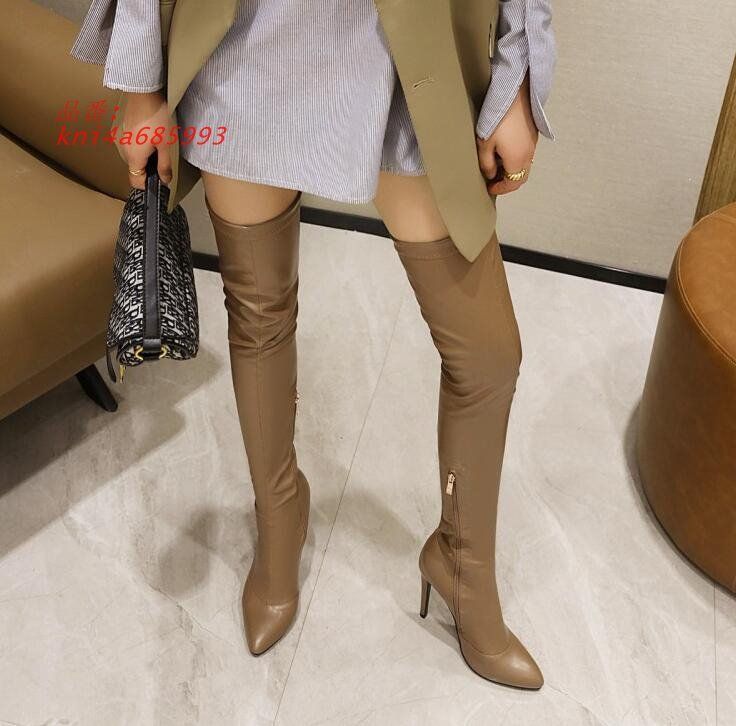 レディースブーツ ロングブーツ ニーハイブーツ ストレット ロング丈 秋冬 ハイヒール ストレッチソックスブーツ ポインテッドトゥ ピンヒール kni 4 a 685993