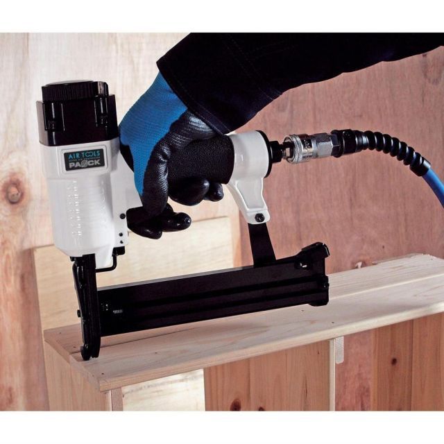 一台でタッカと仕上釘が打てます。内装、床材の仕上釘打ち、ステープル打ち。