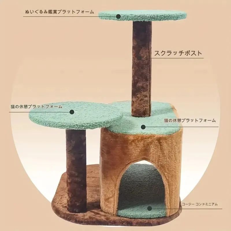 キャットツリー 遊び台 キャットスクラッチングポスト ペットおもちゃ ジャンプ台 木製 可愛い 丸い踏み台 スラッチャー 多頭飼い