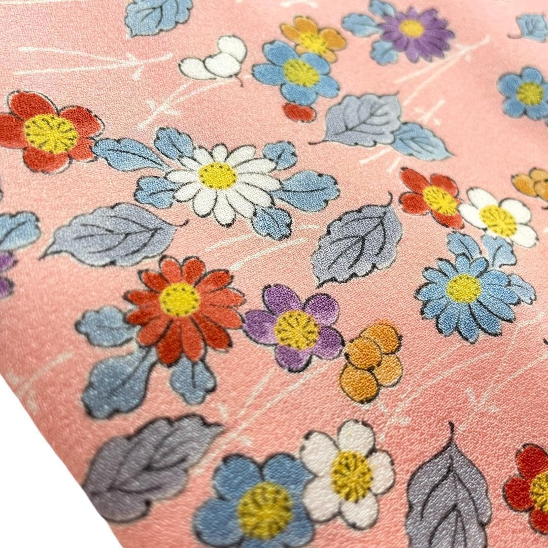 小紋着物 袷 正絹 小花 松葉柄 桃色 着物 kimonolove オゾン消臭サービス A-2047