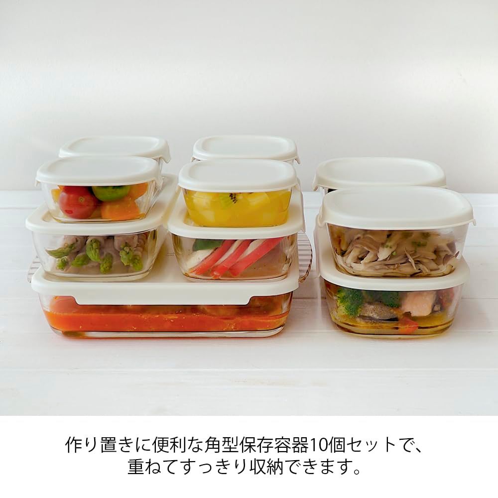 HARIO(ハリオ) スタッキング耐熱ガラスコンテナ・スクエア10個セット HKOZ-1002-OW