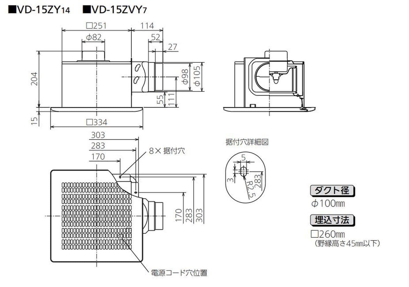 三菱電機(MITSUBISHI ELECTRIC) 天井埋込形換気扇 低騒音オール金属タイプ VD-15ZY14