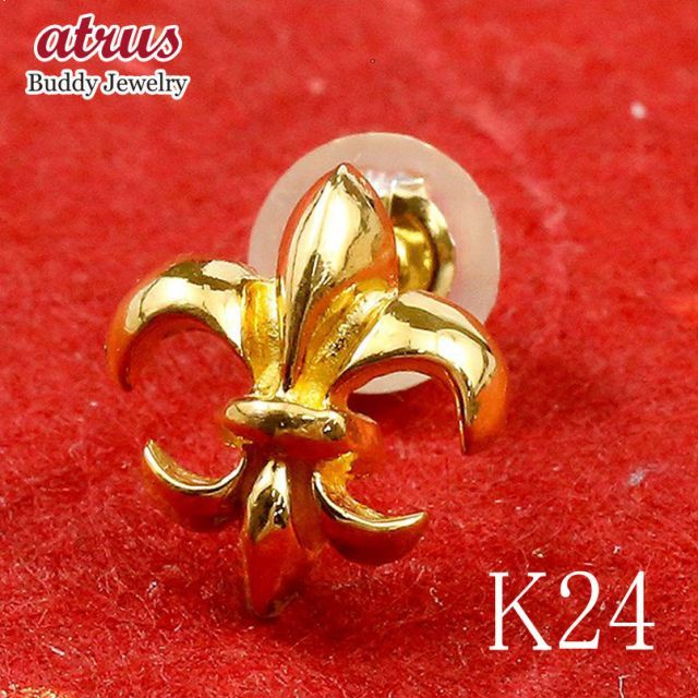 純金 ピアス メンズ 24金 片耳 ユリの紋章 スタッドピアス 金具は18金 イエローゴールドk 18 24 K フルール ド リス 男性