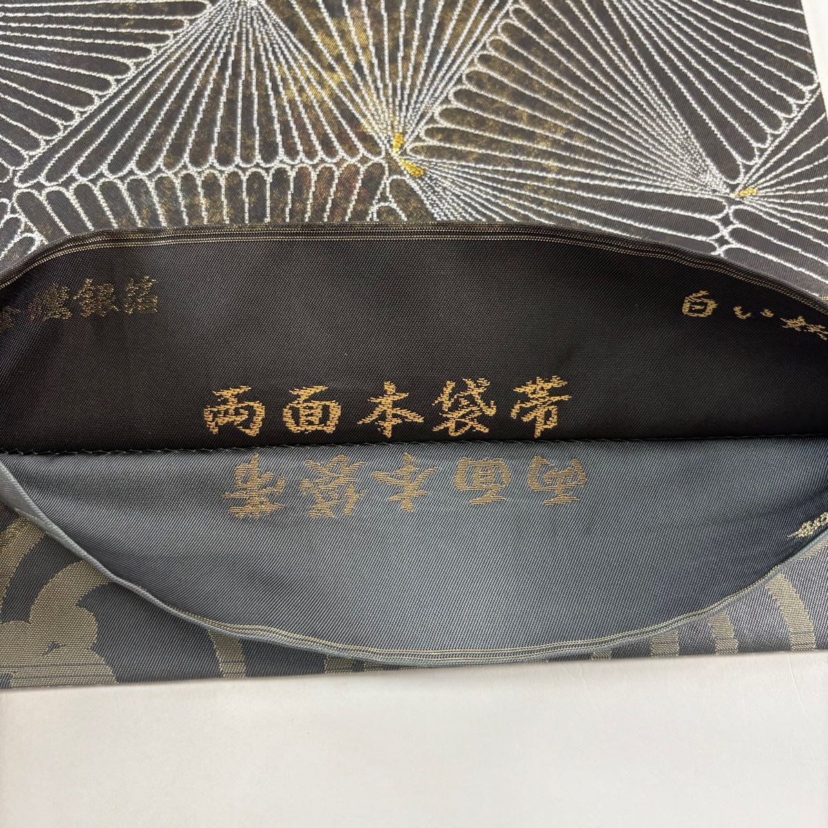袋帯 秀品 落款 菊 金銀糸 箔 焦茶色 お太鼓柄 正絹