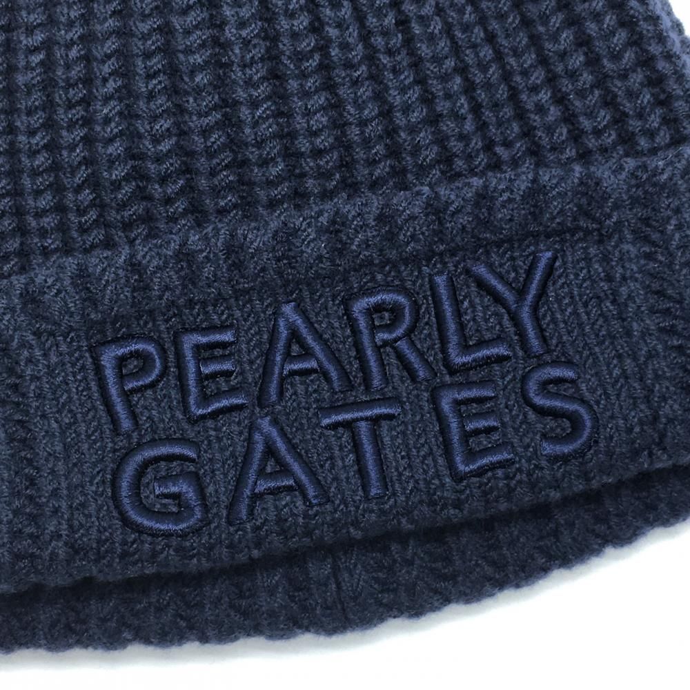 超 パーリーゲイツ ニット帽 ネイビー 立体ロゴ刺しゅう ウール混 FR ゴルフウェア モデル PEARLY GATES