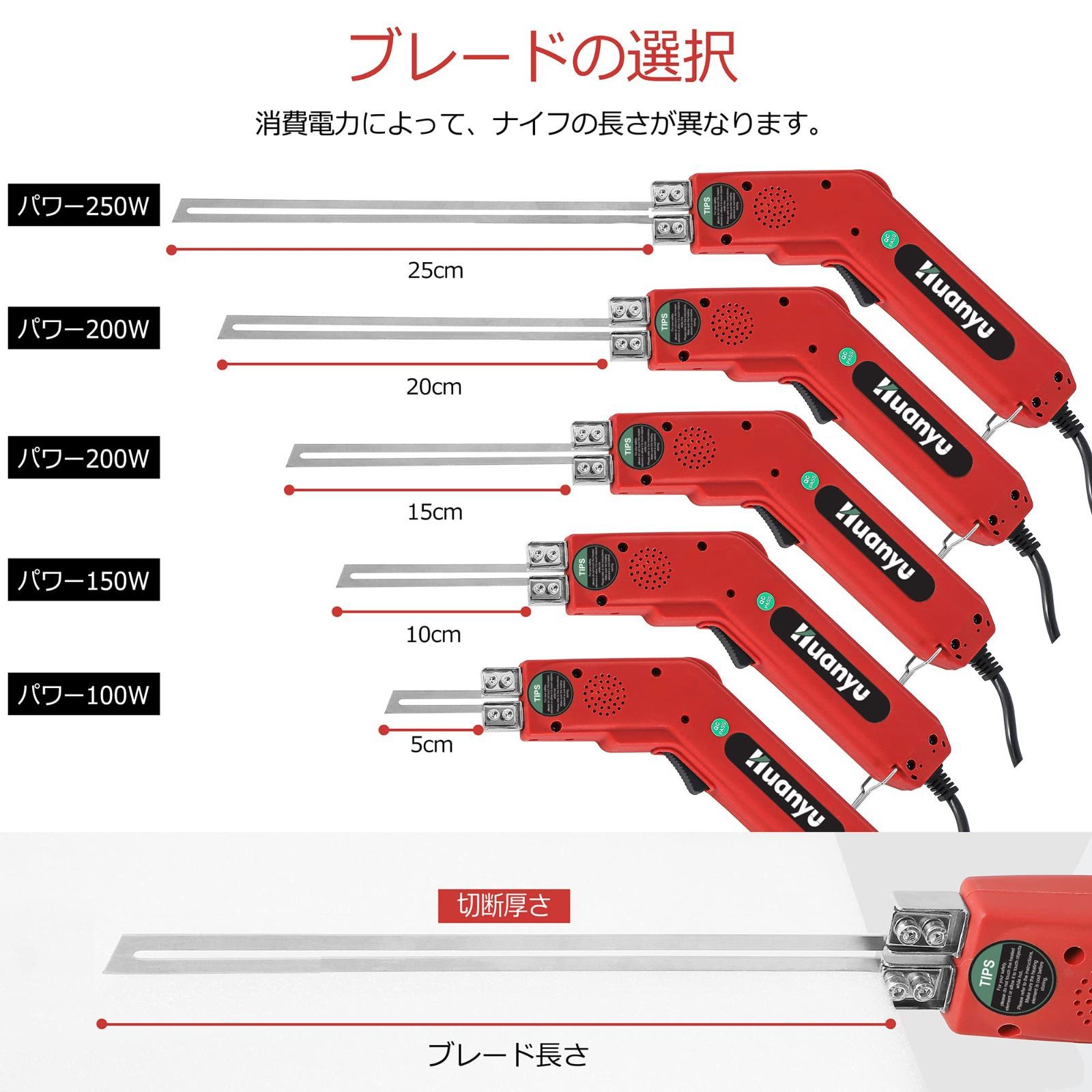 Huanyu 発泡スチロールカッター 25 CM 250 W ホットナイフ 50 500℃温度調節 フォームカッター フォーム スポンジ スチロール 断熱板 押出板 EPE 収納ケース付き 110 V