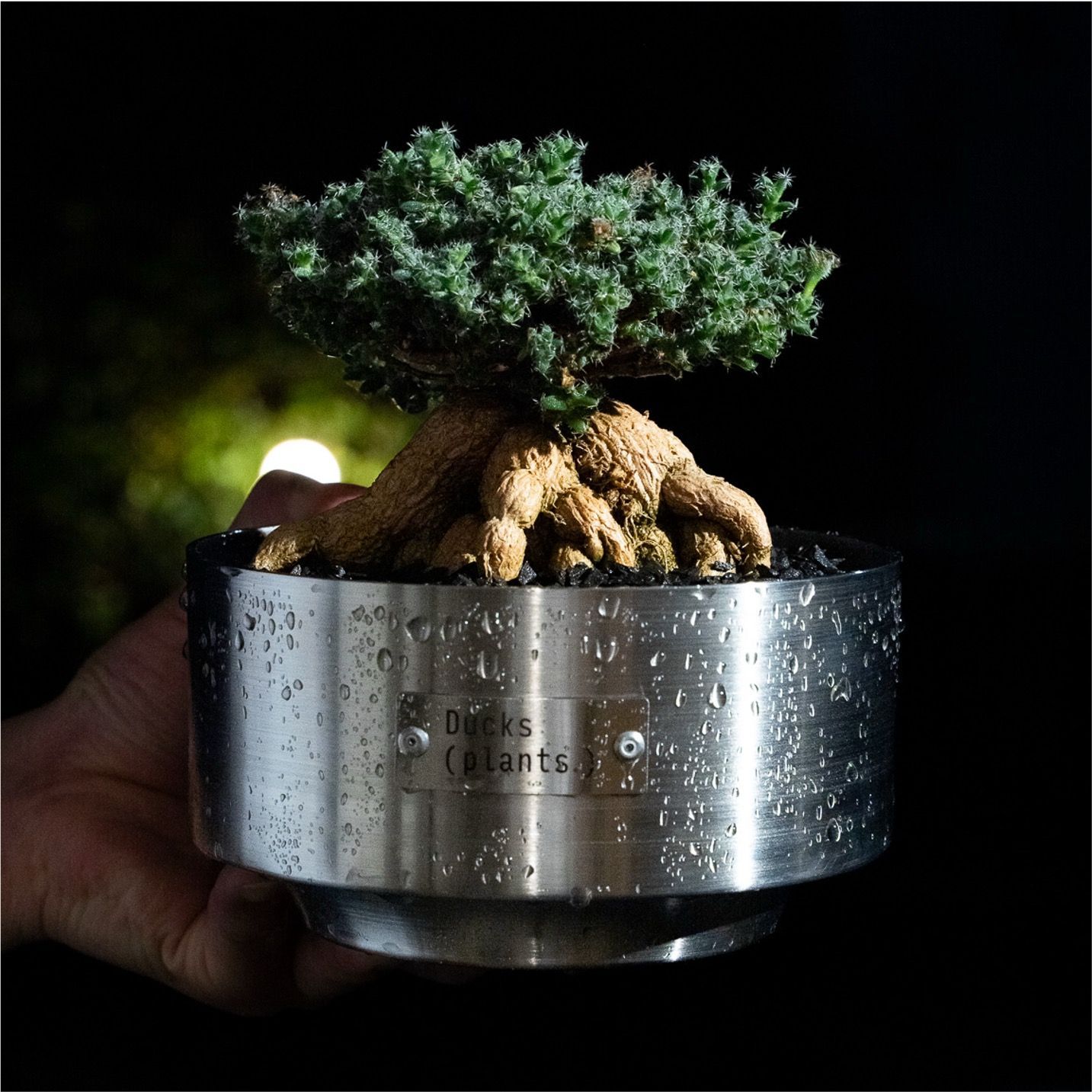 また、真柏や黒松などの盆栽との組み合わせもおすすめで、無機質な金属素材でありながらも和の空気感をまとい、モダンな盆栽鉢としてもご活用いただけます。