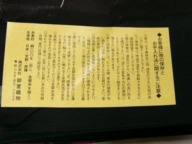 西陣の「株式会社御薗織物」のタグがついておりました。
