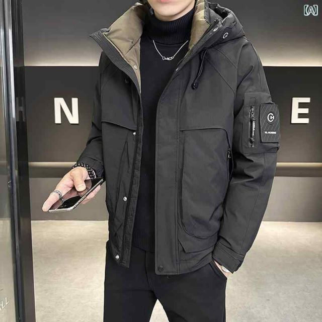 秋冬 コーデ メンズ 服 シンプル ファッション オシャレ 大人 かっこいい 大きいサイズ ストリート 紳士服 ダウン ジャケット アウター カジュアル フード付き 暖かい