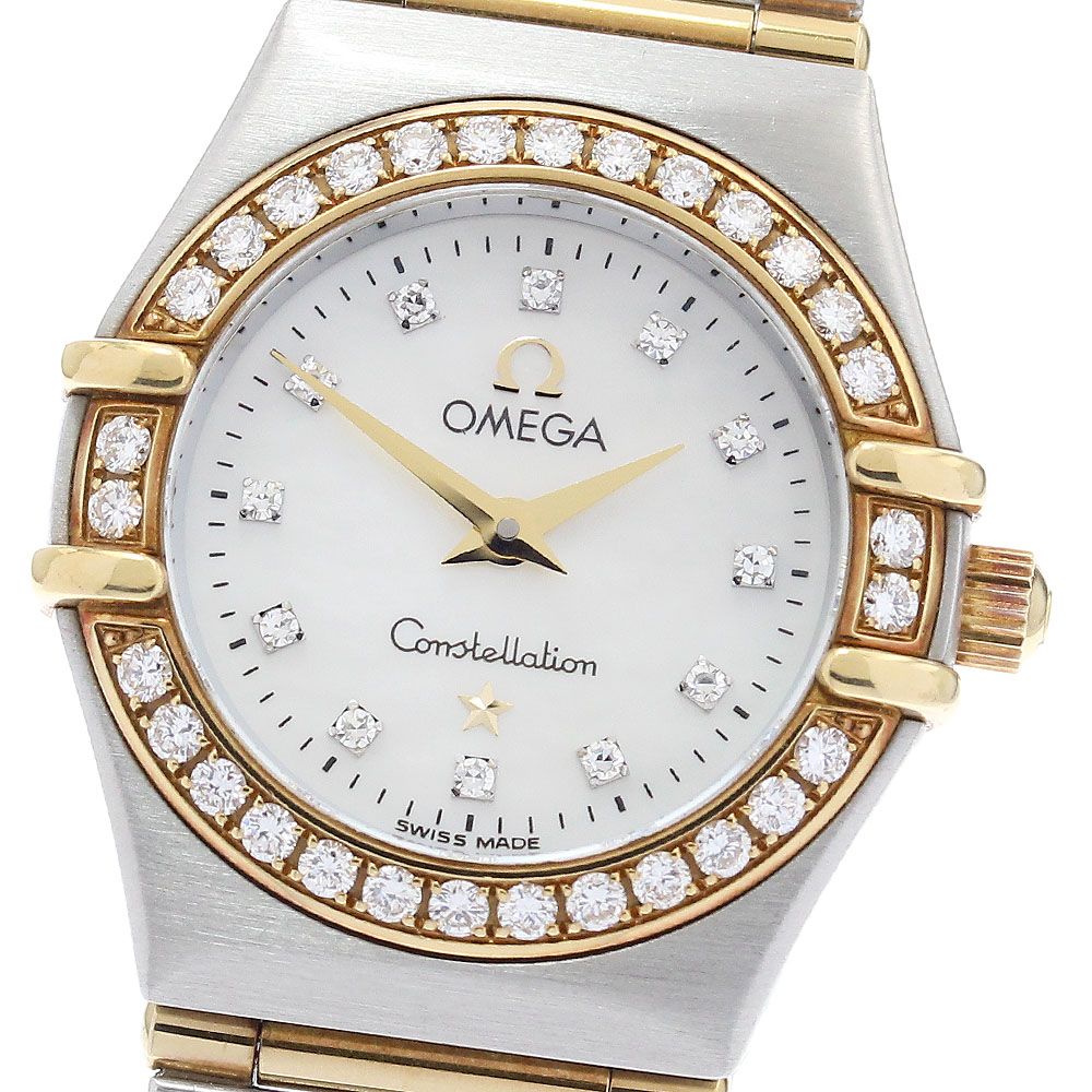 オメガ OMEGA 1267.75 コンステレーション ミニ 12 P ダイヤベゼル フルバー シェル文字盤 クォーツ レディース _912223