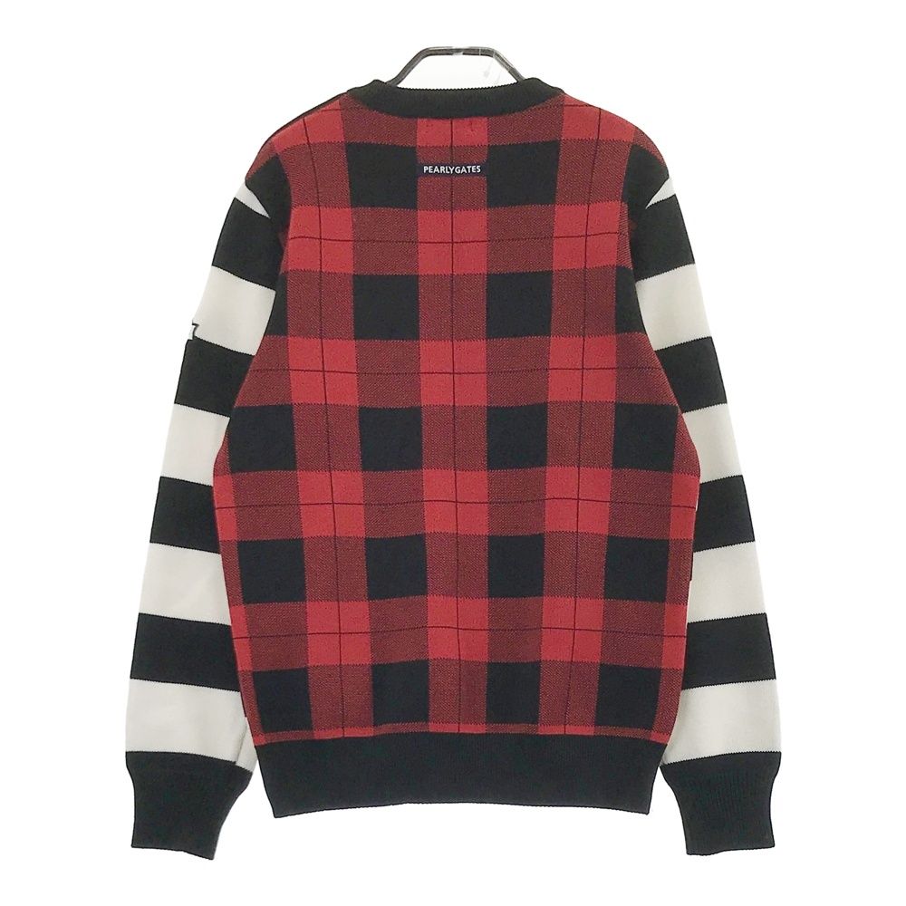 サイズ 4 PEARLY GATES パーリーゲイツ クールネック ニットセーター ボーダーチェック柄 ホワイト系 ゴルフウェア メンズ ストスト