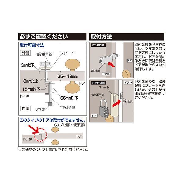 ●外開き・一枚扉の玄関ドア用補助錠、一般扉用の5個セットです。4段番号錠付です。