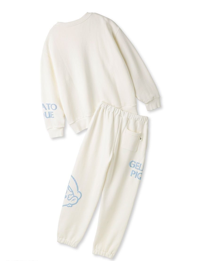 【立体感のある発泡プリントがかわいいユニセックスサイズの裏毛プルオーバー&ロングパンツセット】