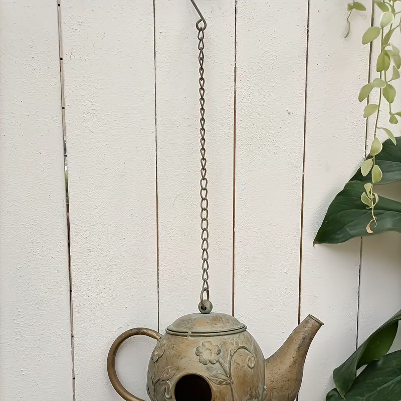 巣箱 鳥の巣 鳥の巣箱 バードハウス バードルーム 鳥用品 鳥かご 吊り下げ ぶら下げ 庭園 自然 装飾 休憩所 ハウス 金属 オシャレ ティーポット型 ヴィンテージ風 アンティーク調