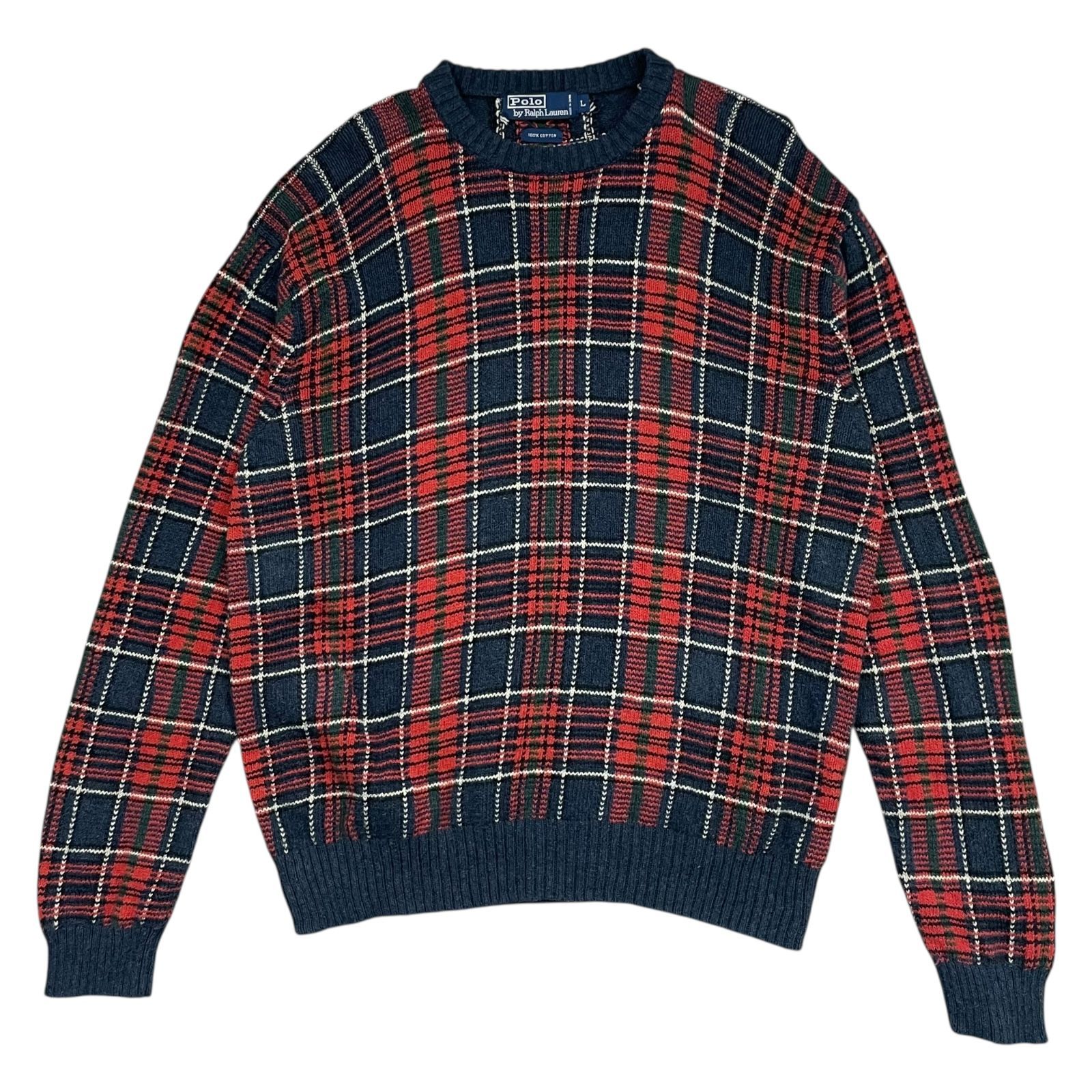 90 s 00 ポロラルフローレン タータン プレイド チェック 柄 コットン ニット セーター サイズ L