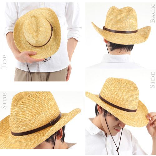 【素材】麦わら(太麦)、牛革、綿紐、ポリエステル(汗止め)、合金