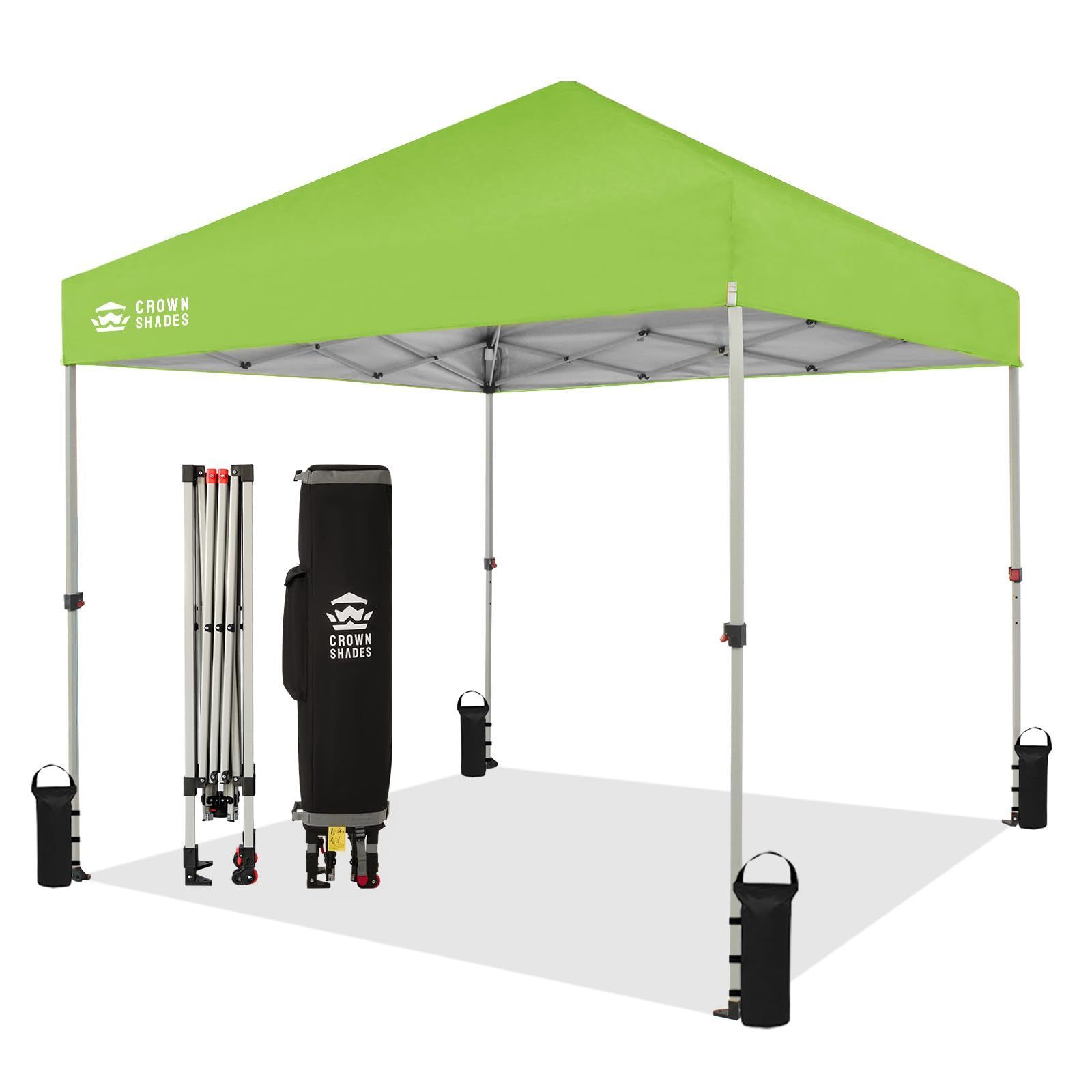 CROWN SHADES ワンタッチ タープ テント 2.5m×2.5m 3段階高さ調節 UVカット 防風 鋼製フレーム シルバーコーティング 組み立て簡単 携帯に便利 タープテント ワンタッチ ント キャンプ ビーチレジャー バーベキューパーティー キャンプ用品 屋外日除け (グリーン)