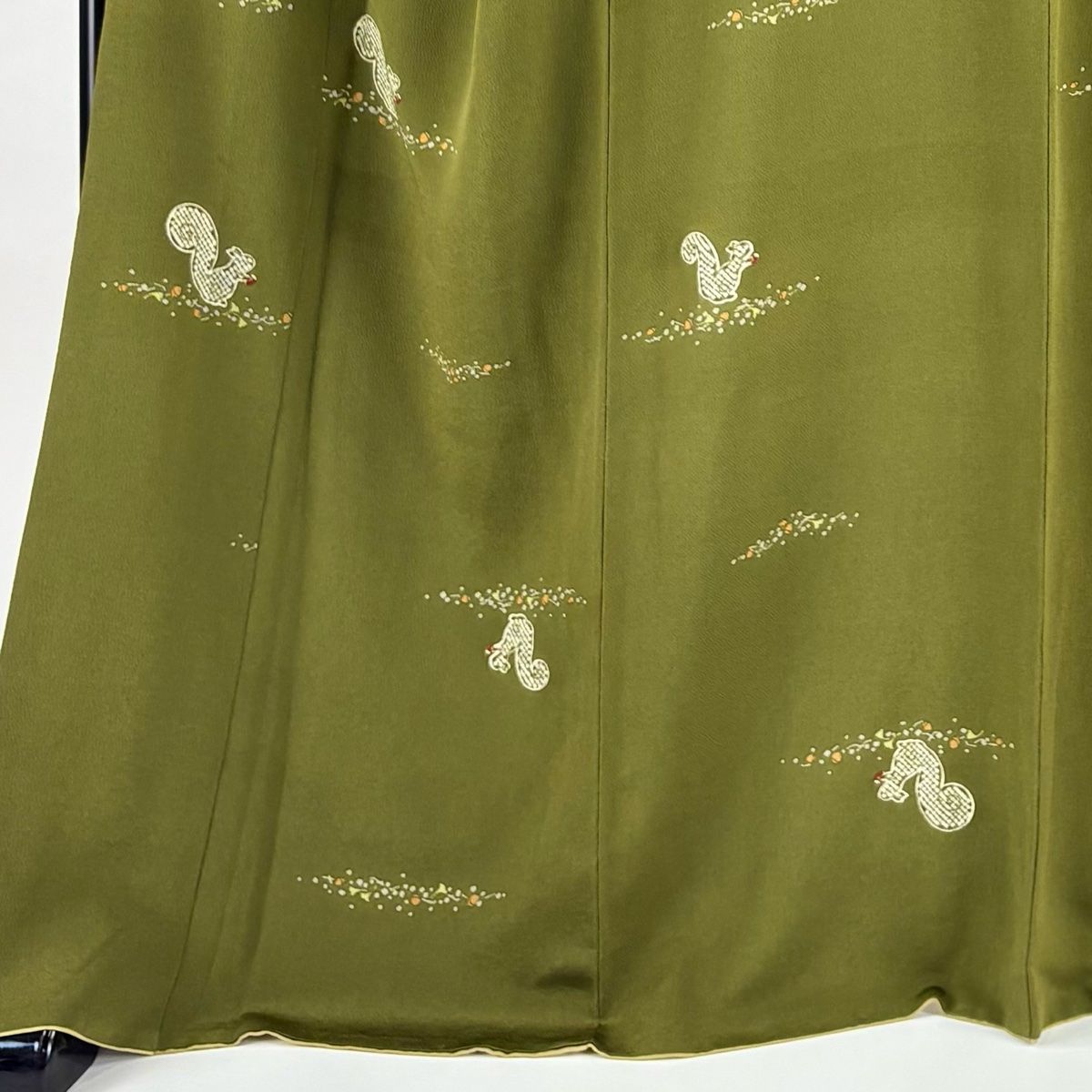 小紋 身丈168.5 cm 裄丈68 L 袷 リス どんぐり 縮緬 茶緑色 正絹