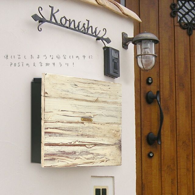 ブロカント感が漂う埋め込み型ポスト「Ante」は、金属製では味わえない「木」ならではの温かみのある風合いが特徴。