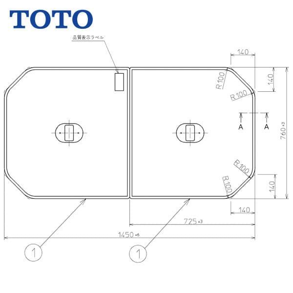 TOTO 軽量把手付き 式 ふろふた 組 1450 mm 760