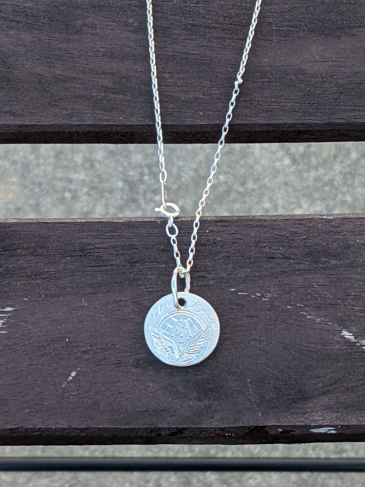 ラウンドのネックレストップに、ブルーインパルスロゴマークを描きました。