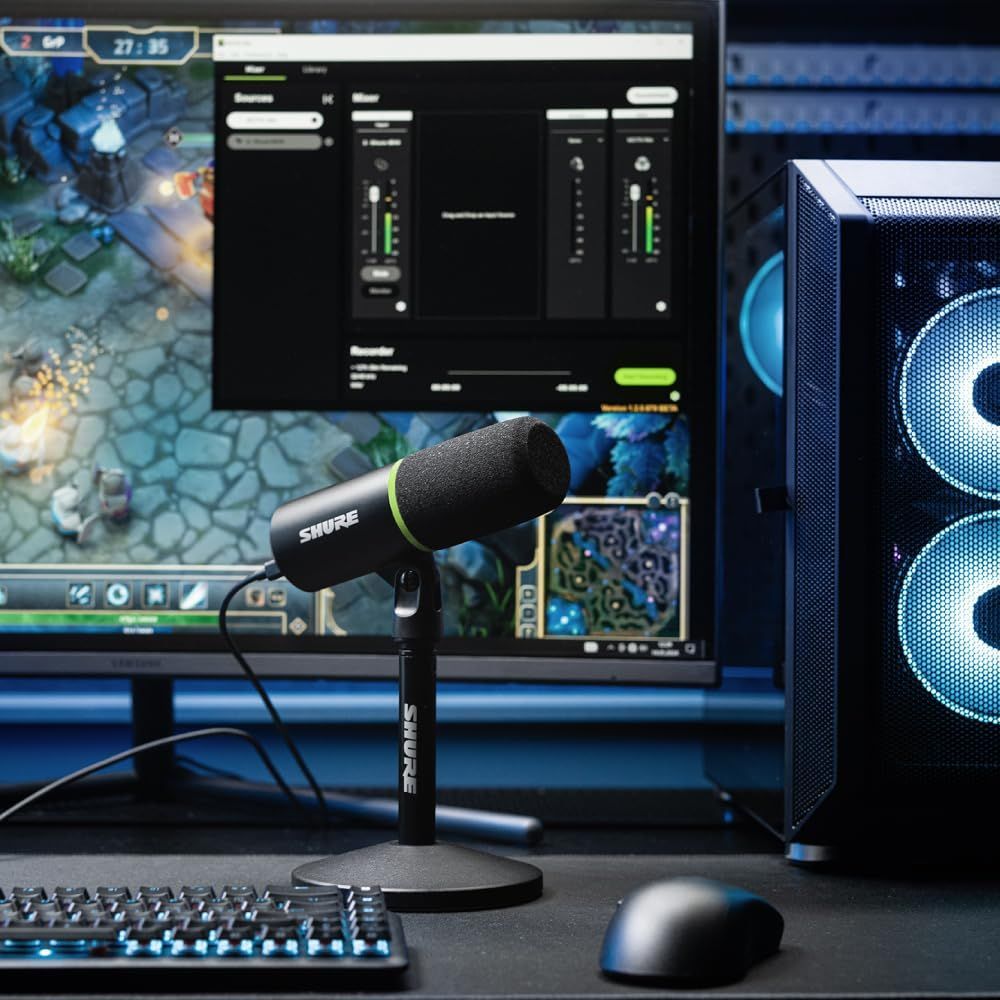 VGP 2025 金賞 SHURE シュア MV 6 USB ゲーミング マイクロホン ダイナミックマイク 単一指向性 USB-C 有線 ノイズ除去 オートレベルモード ミュートボタン MOTIVシリーズ Windows Mac iOS Android 対応