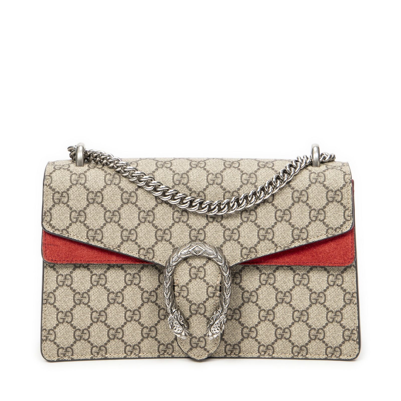 GUCCI グッチスモール ディオニュソス チェーン クロスボディ赤|ベージュスプリームPVCキャンバスA