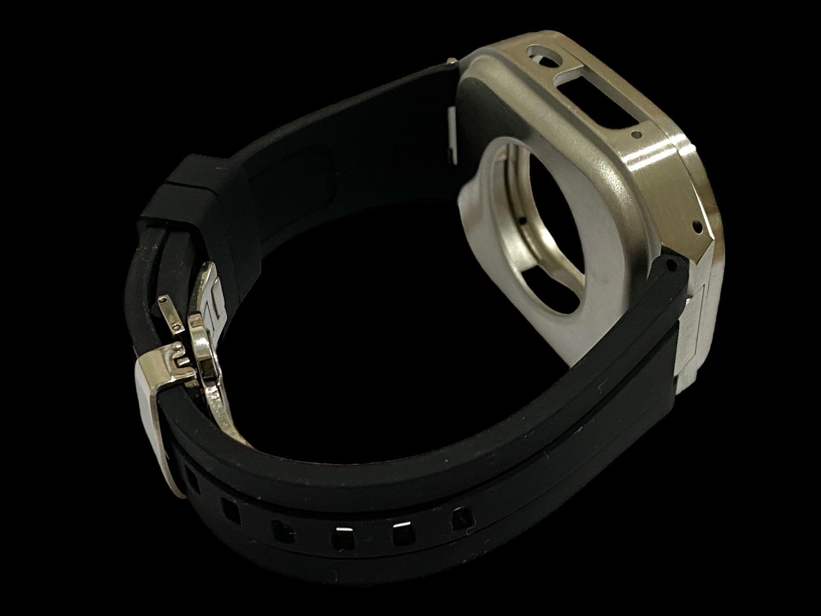 ブラック×フルシルバーケース 49 mm apple watch ultraアップルウォッチラバーメタルカバーセット ウルトラ 49ミリ用 カスタム