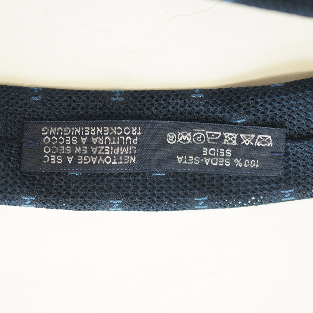 栄 エルメス ロゴ ネクタイ シルク 総柄 ネイビー ブルー 青 大剣幅約7 cm 小物 その他 箱
