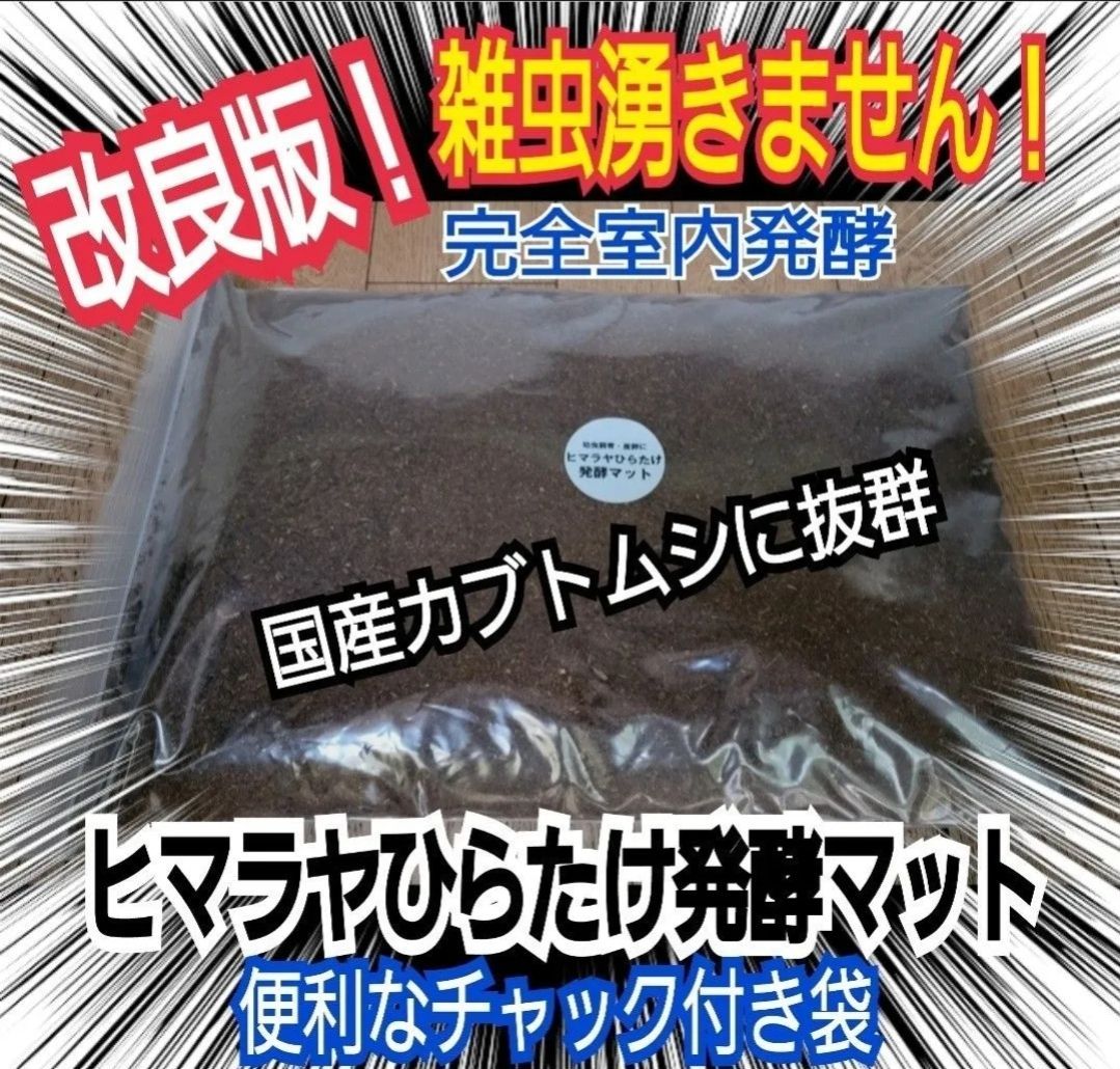 カブトムシ幼虫が巨大化する栄養価抜群の『改良版!ヒマラヤひらたけ菌床発酵カブトムシマット』の出品になります(写真は10枚添付してありますのでご覧下さいませ)