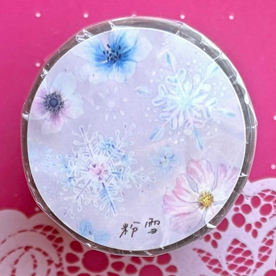 贝壳光 粉雪 5 cm 6 m 100 loop 海外マスキングテープ 海外マステ 花 雪の結晶