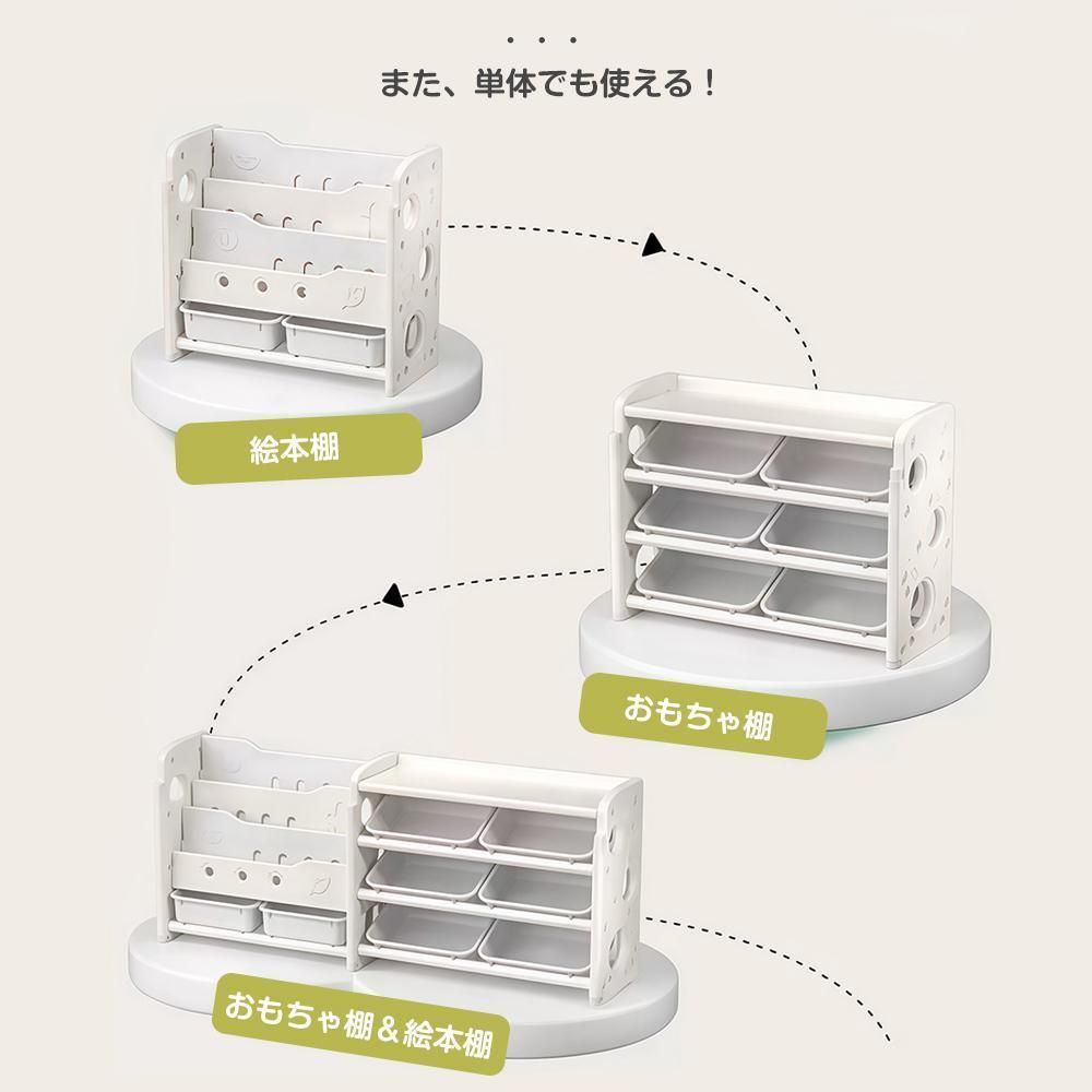 【全部まとめて収納!】おもちゃ棚:約幅73奥行32高さ65㎝絵本棚:約幅73奥行32高さ65㎝小物を簡単に入れてもきれいに整理できる!小さな頃からお片付けを習慣にしよう。
