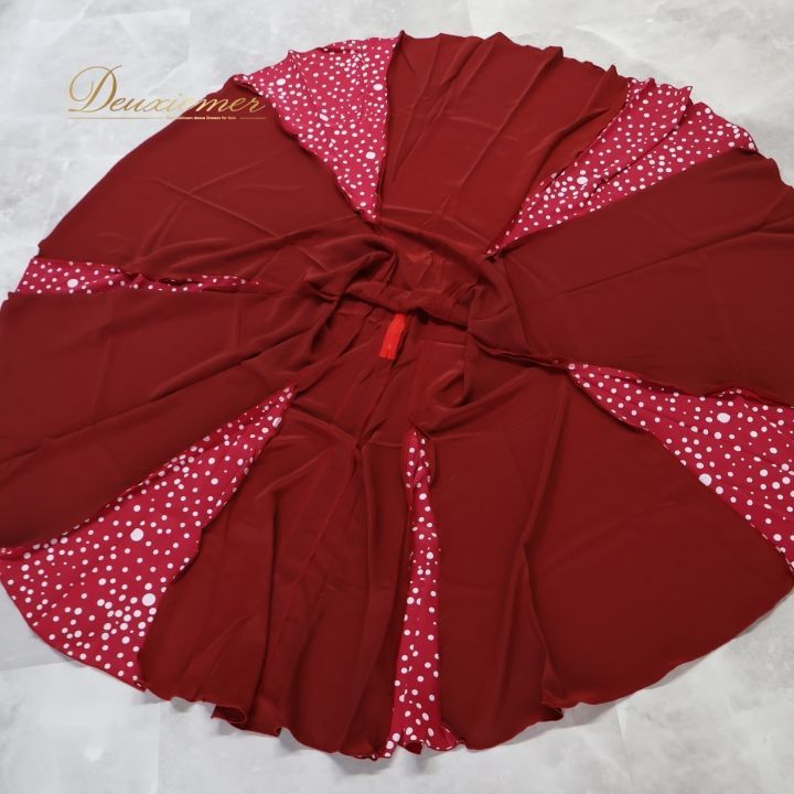 フラメンコ 衣装 ファルダ レッド系 エルモサ イベリア スカート 赤 白 水玉 ドット柄 レッスン HERMOSA IBERIA ワインレッド 落ち着いた かわいい 上品 ホワイト系