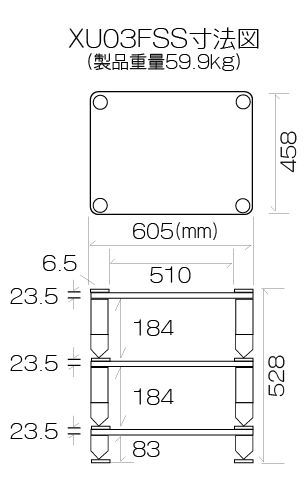 XU 03 FSS 幅605 mm高さ528 mm 8 6 mmの合わせ防弾ガラスのオーディオラック 支柱シルバー Sound Magic サウンドマジック