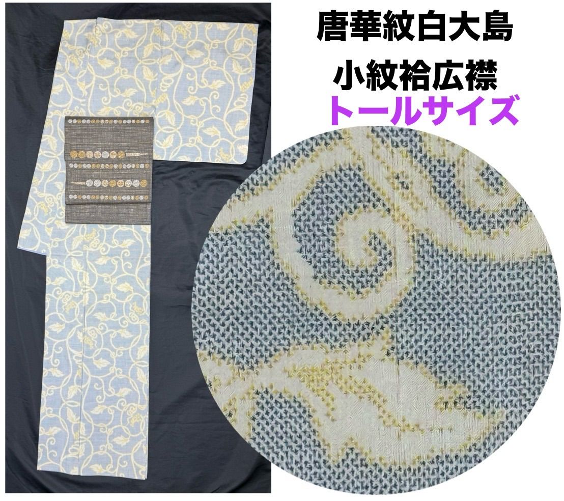 k 31 唐華紋白大島 豪華絢爛トールサイズ身丈166 cm正絹小紋袷広襟