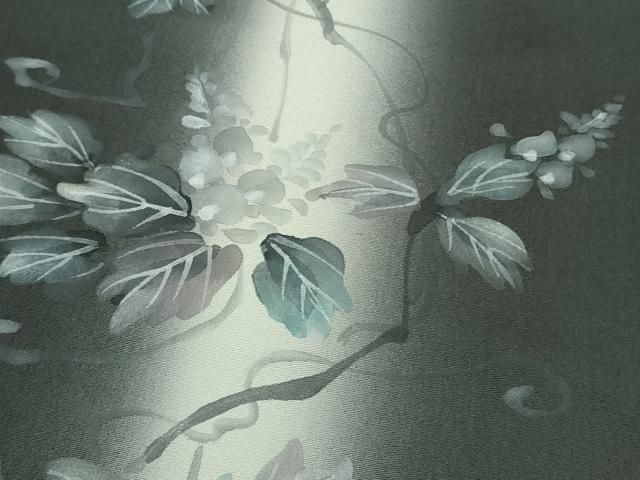 平和屋着物 上 訪問着 手描き 蔦の葉文 暈し染め 藍墨茶色地 kh 5