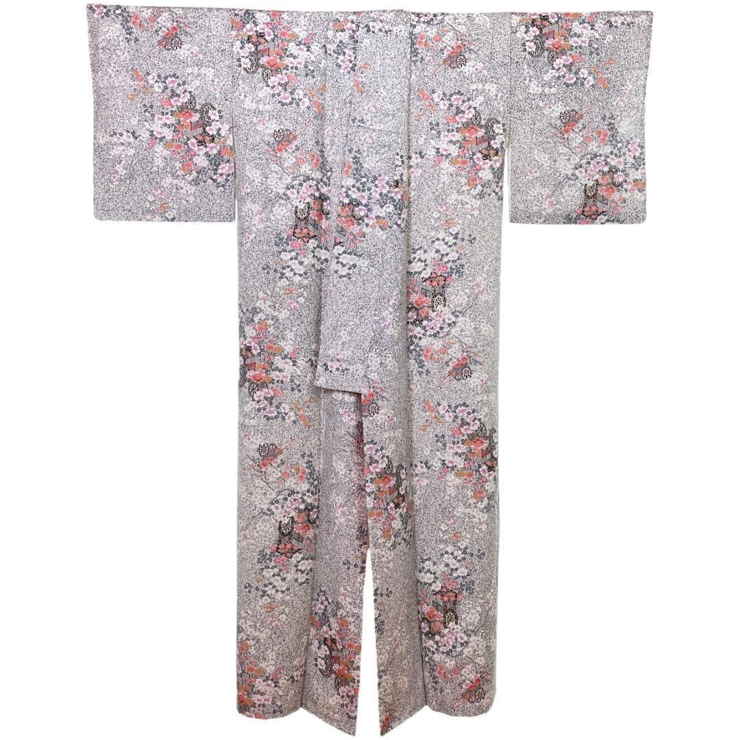 小紋着物 袷 正絹 金彩 御所車 草花 大きいサイズ 着物 kimonolove オゾン消臭サービス A-2042