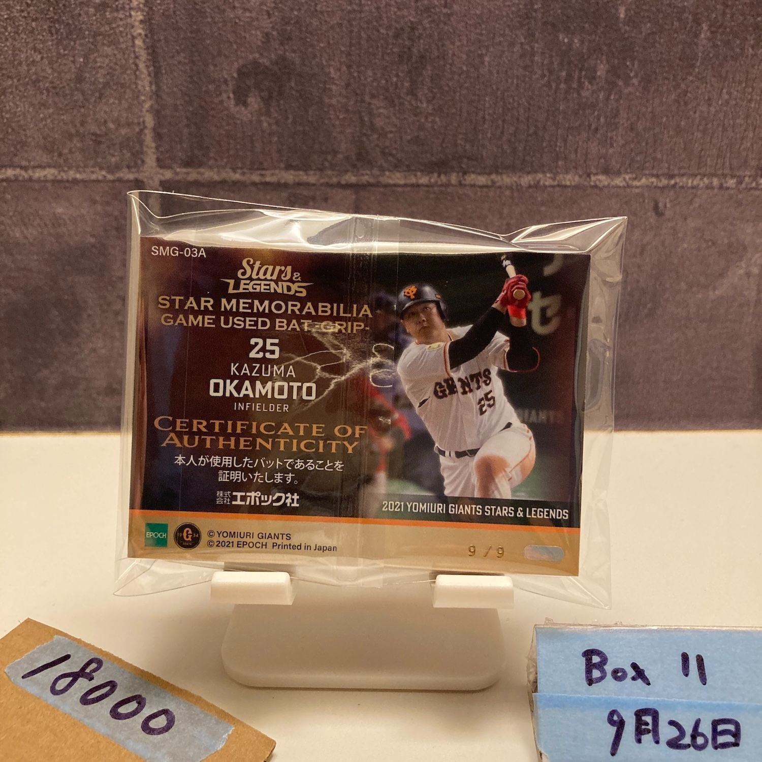 2021 EPOCH 岡本和真 9/9 読売ジャイアンツ Stars & Legends Game Used バット Grip ラストナンバー Last Number