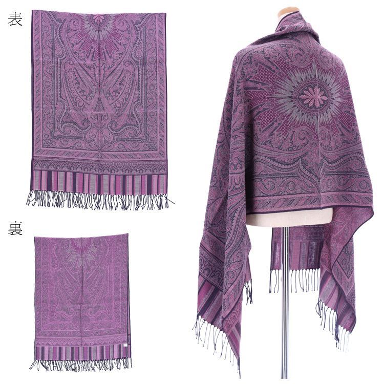 シルクストール ジャガード 大判ストール ウール ショール レディース メンズ 大人 ペイズリー ギフト プレゼント パープル キャメル ワイン