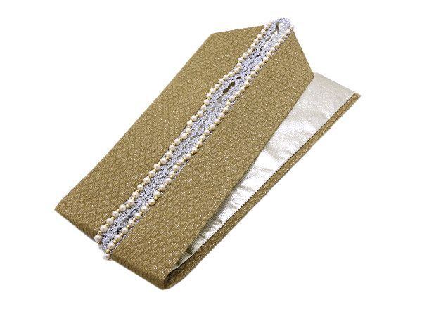 着物美人 送料込み! 重ね襟 パールレース 黄土 銀 m339277E1