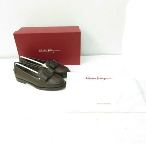 サルヴァトーレフェラガモ Salvatore Ferragamo VIVALDO ヴァラ リボン ローファー シボ レザー カーフ 茶 ブラウン 6 約23.5 cm 0753764