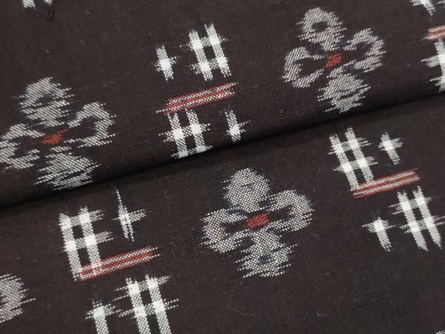 平和屋着物 久留米絣 反物 着尺 舞花文 丸山直作 黒地 証紙付き 綿 we