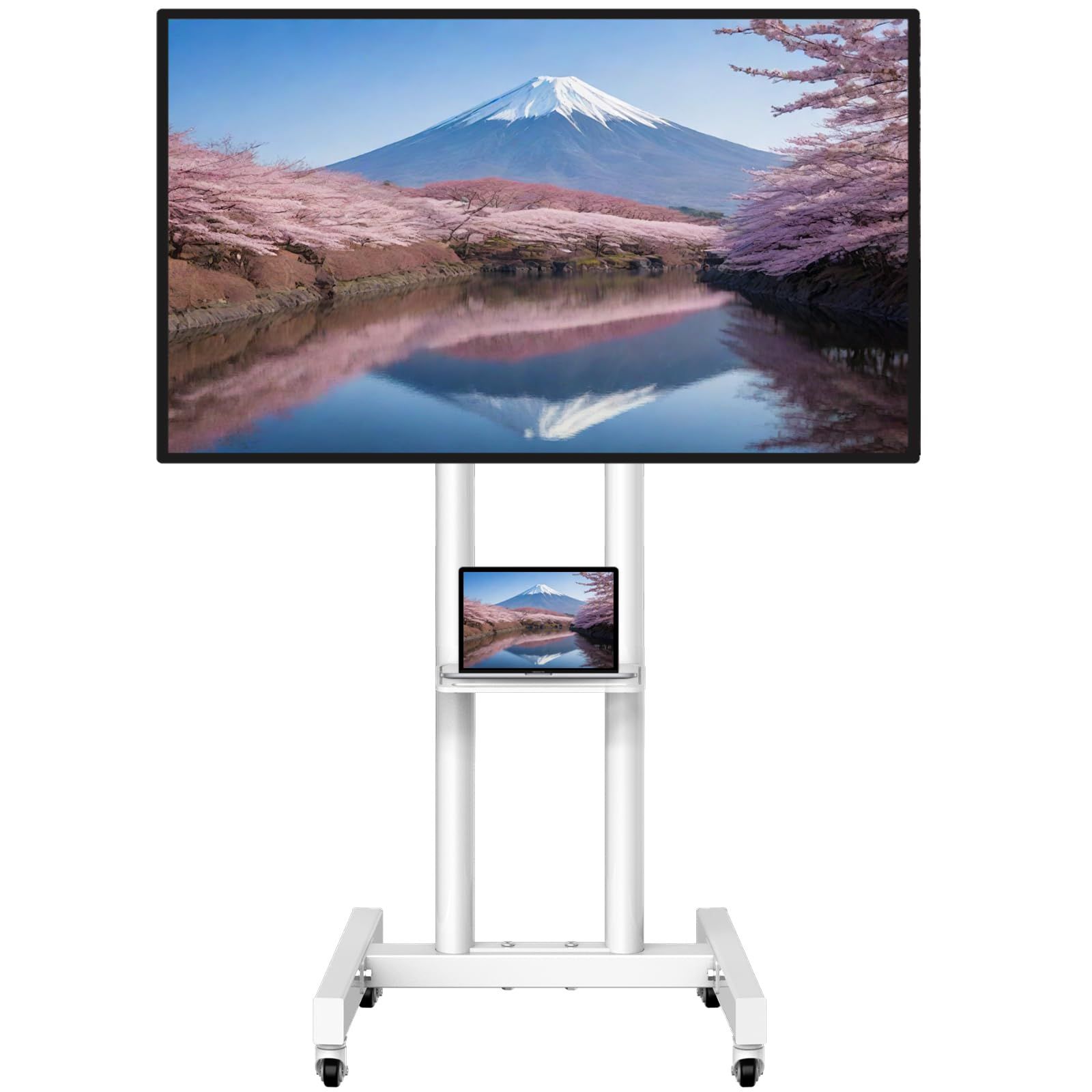 ORMGZIN テレビスタンドキャスター付き32-60インチLED、LCD、OLED 液晶用フラット&曲面対応自立式可動式テレビ台 キャスター付き床置き 壁寄せ ハイタイプ 移動式 tvスタンド ハイタイプ/ロータイプ高さ調節可能 VESA/横100~400mm/縦100~400mm 耐荷重30kg tv stand ホワイト白