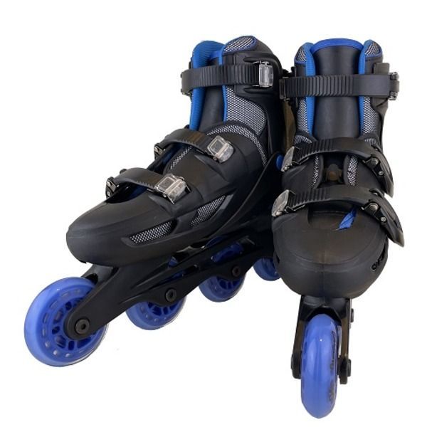 インラインスケート ローラースケート ブルー 24~27 cm 4段階サイズ調
